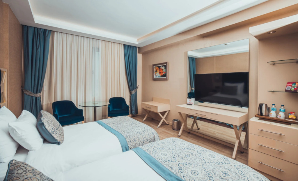 Описание номеров Wow Istanbul Hotel 5*:275 номеров отеля оборудованы кондиционером и сейфом и обставлены удобной мебелью. В ванной комнате предоставляются бесплатные туалетные принадлежности. Вечером вы можете посмотреть телевизор со спутниковыми каналами или воспользоваться бесплатным проводным доступом в Интернет.