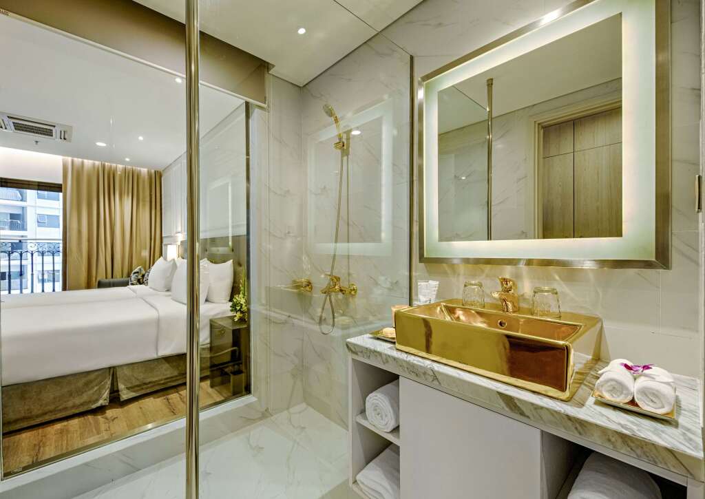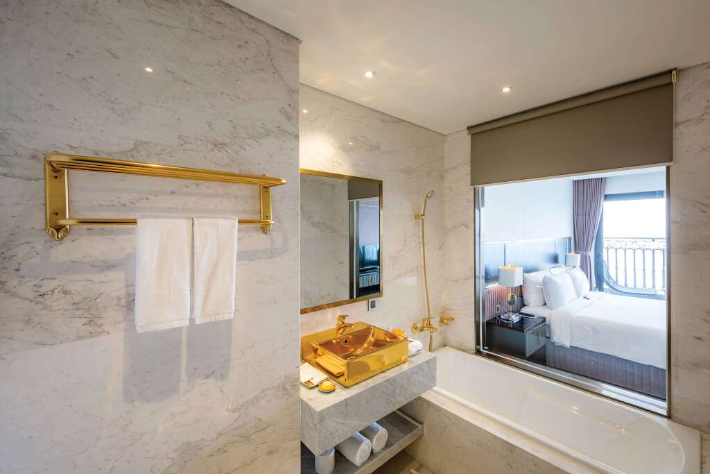 Описание номеров Wyndham Danang Golden Bay 5*:Чтобы вы могли отдохнуть после долгого дня, в номере есть душ, телевизор, мини-бар, халат и тапочки. Перечисленные услуги есть не во всех номерах.