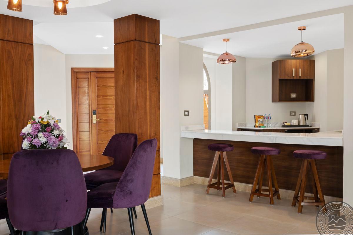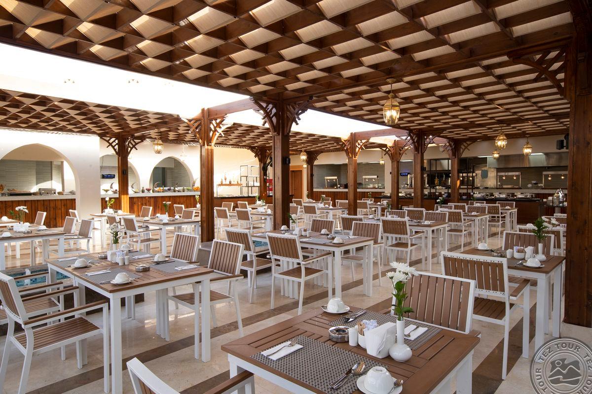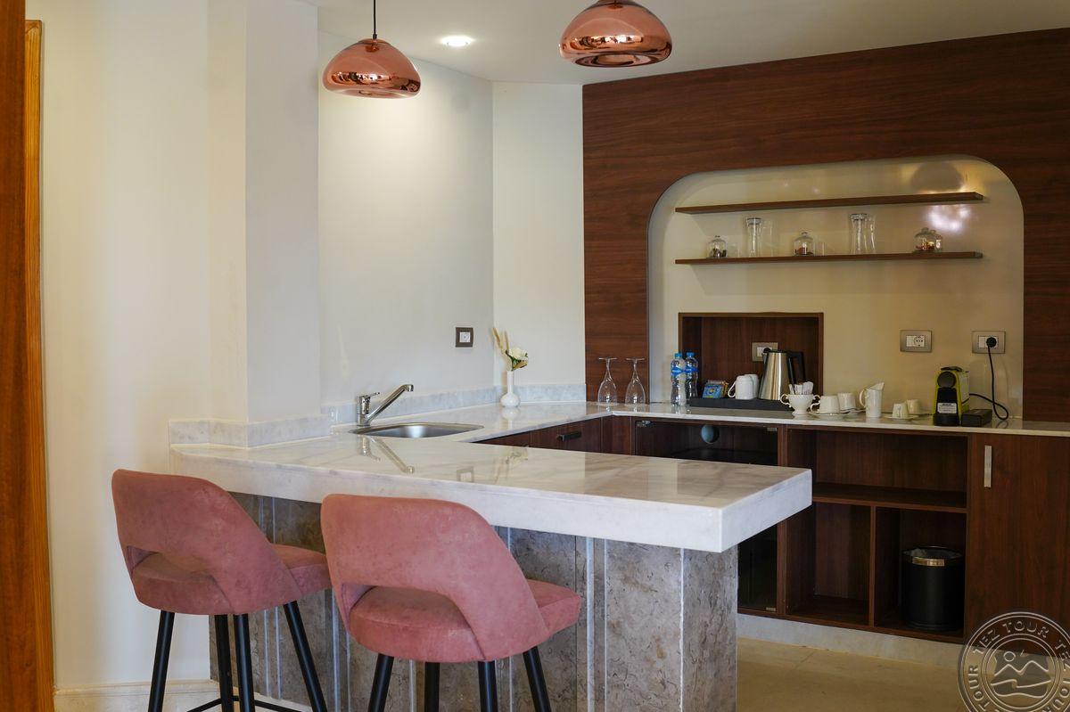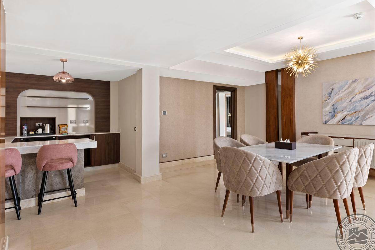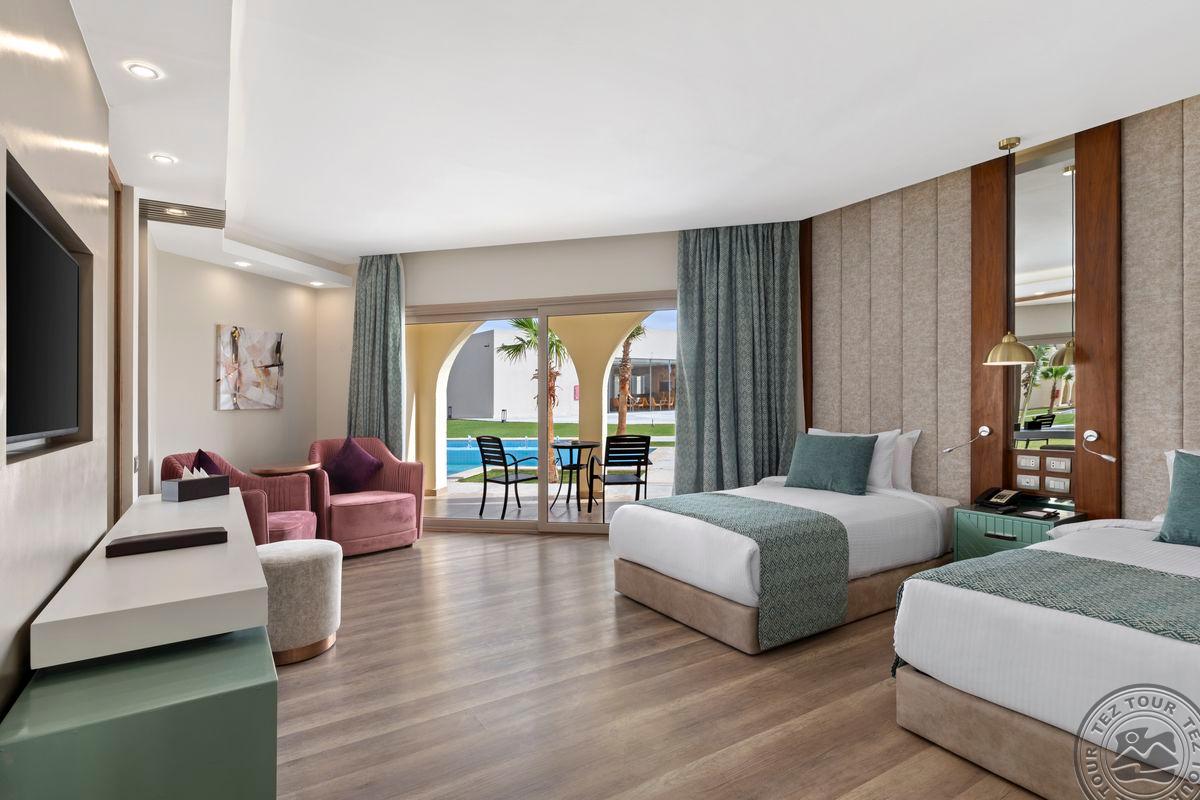 - Расположение: в 30 км от аэропорта Хургады, в регионе Макади, на самом берегу моря. Отель: Открыт в апреле 2022 года. Всего 815 номеров: Main Building Superior room (Garden View/Side Sea View/Sea View, макс.2+1 чел., 35-45 м2, спальня c King size bed или Twin beds, включая ванную и балкон. Дополнительное спальное место – раскладная софа), Main Building Superior Swim up room (Pool View, макс. 2 чел., 45 м2, спальня c King size bed или Twin beds, включая ванную и террасу) Dune Superior room (Garden View, макс. 3 или 2+2 чел.,