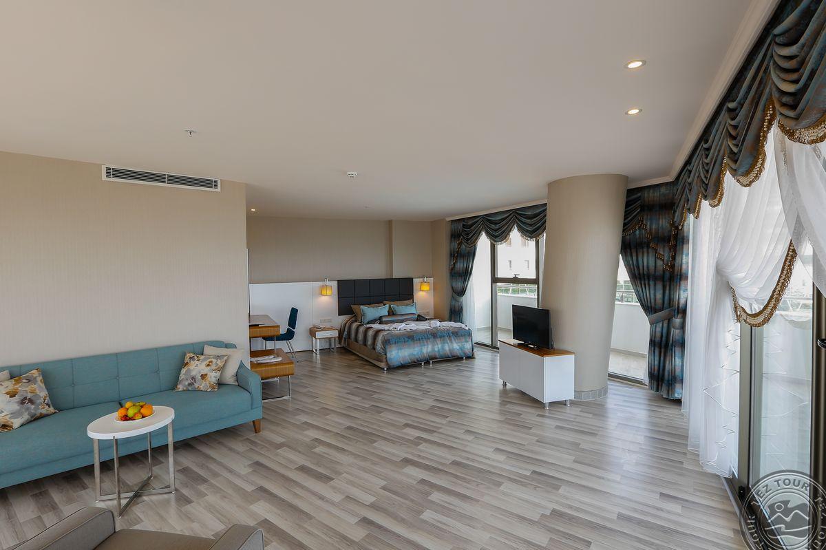 5 двухкомнатных Deluxe suite sea view rooms (гостиная, спальня, джакузи, макс. 2+1 чел., 57 м2);