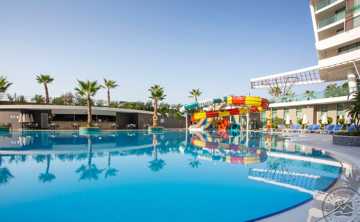 Территория:> рестораны: 1 (основной) бары: 5 крытые бассейны: 1 бассейны: 2 (открытые) спа-центр (платно) конференц-залы: 3 у бассейна полотенца: бесплатно рестораны a la carte: 2 (османский, средиземноморский,- по предварительной записи, посещение одного ресторана за 7 дней проживания – бесплатно) водные горки: 3 врач по вызову Wi-Fi бесплатно прачечная платно прокат автомобилей (платно) у бассейна зонтики, шезлонги, матрасы: бесплатно парикмахерская (платно) магазины (платно)