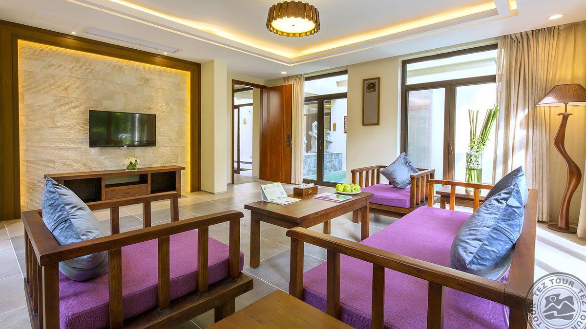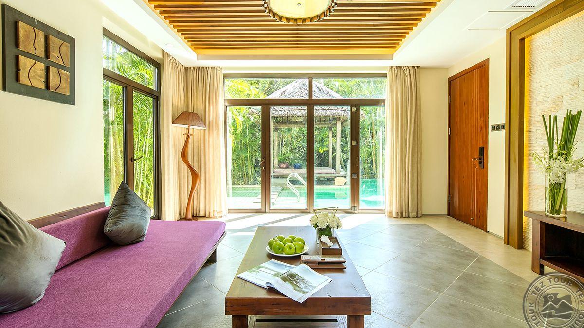 Villa Room (номера расположенные в виллах 5 Bedrooms Villa или 6 Bedrooms Villa,1 этаж зоны вилл №150-180, вид на сад вилл, 2 односпальные кровати, общая гостиная, патио, общий бассейн, макс. 2+1 чел., 32 м2);