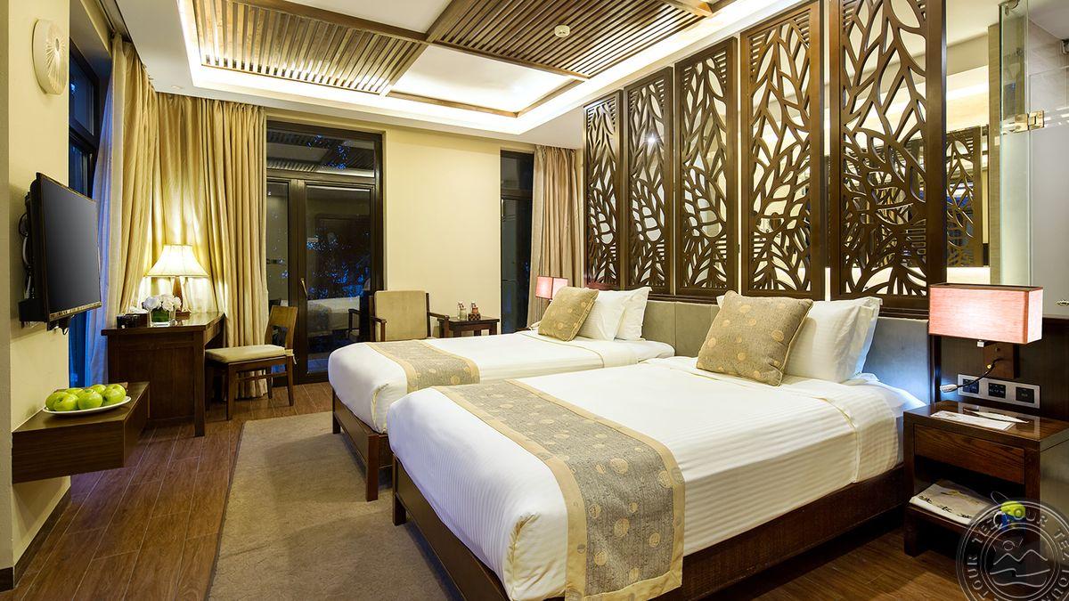На территории отеля - красивое большое озеро, площадь 14000 м2. Состоит из одного 3-этажного корпуса и 108 вилл. Всего 355 номеров.